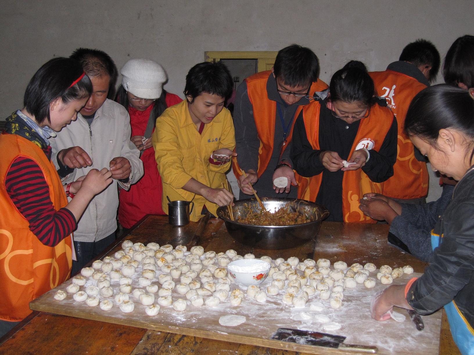 大家一起包包子。