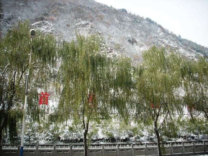 在河道旁的山上,原本是一片死气沉沉的样子,现在却显得那么有朝气。山上的一切都穿上了银装,远远望去好像飘着一团白气,有仙人居住一样。那么的神秘!