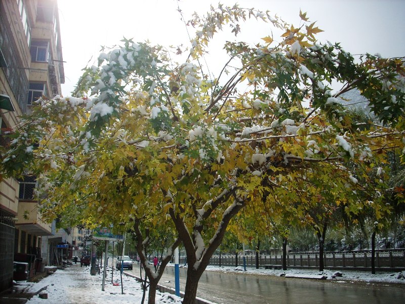 今年的第一场雪下得好大,也令我们很兴奋。美丽的枫树披上了银光闪闪的外衣,它们也迫不及待的洗梳和妆扮自己,来融入这个白色的世界。