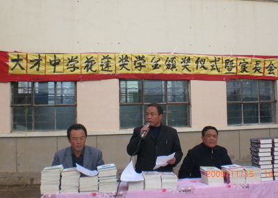 大才中学在某些方面009年11月16日召开了花莲飞扬成长中心奖学金颁奖和家长会.下面是主管教务校长的发言;首先,对各位家长能在百忙之中抽出时间来参加这次家长会表示忠心的感谢!召开这次家长会的目的是为了加强老师与家长,家长与家长,家长与学生之间的联系,相互交流一下学生在校及在家的情况,以便老师能够更有针对性的实施教育,家长能够更好教育自己的子女做人与成材. 这次会议的主要中心是;花莲飞扬少年成长中心的奖学金颁奖和家长会,由于天气冷,我们先颁奖,然后请家长到学生所在的班级和班主任交流,召开家长会.