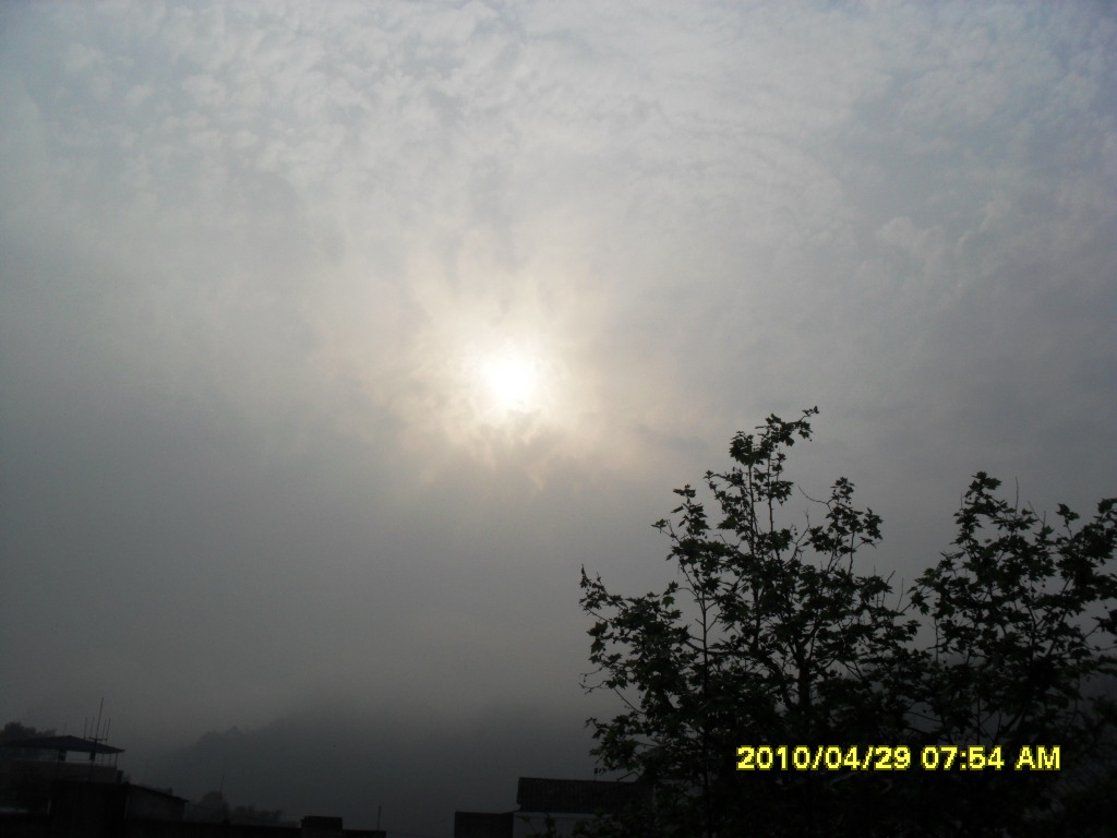 薄薄的轻雾笼罩在山的周围,给山们增添了一份神秘的色彩,天边的云微微泛起了一丝的红晕,紧接着,层层尽染,天边的云彩映射出了五彩的霞光,太阳仿佛已经爬上了山坡,却又被厚厚的云彩遮住了,它似乎极力的想挣脱开云彩的束缚,不断的放出热量来烘烤着每一片云彩,渐渐的,云彩越染越红,越染越红,终于,万能的太阳之神胜利了,它冲破了云霞,露出了它慈爱的脸庞,却又显得那样的年轻,充满活力,像一个羞红了脸的小姑娘,又像是一个半熟的蛋黄,烙在了半空之上。片刻,万丈光芒,撒满大地,照亮了世界的每一个角落,照亮了每一个人的心。当她恬淡的把她的第一缕阳光照在我脸上的时候,我感到了无比的温暖,无比的幸福,包括我的家人,我们都沉静在了这幸福的光芒之中。周围的一切景物在晨曦之下,显得那样的清新自然,给人以无限的希望与遐想,伟大的太阳之神,用他的行动告诉了我们:光明终将驱走黑暗,只要你肯付出等待!