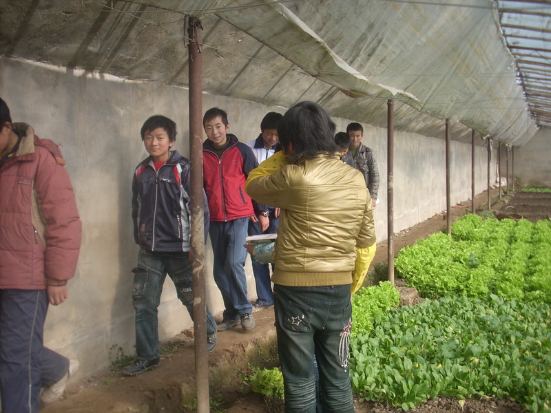 走在温室的路上,我们有说有笑。谈论的就是"种菜"我们彼此都把自己父母种菜的经历讲出来和大家一起分享。另外,我们还有一个话题就是,我们的职业教育老师是以前教化学的,他会不会种菜呀!