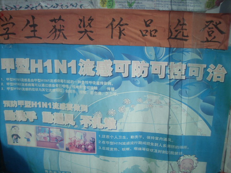 但是我们没有想到的是,在刚过完国庆回来。学校老师说,在我们青海大通也发现了H1N1这种病。所以老师们也特别重视,每天在教室里面消毒两次。而且每天给每个同学都量体温。
