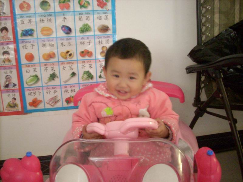 瞧!我的妹妹多神气。她一手转着方向盘,小脚踩着脚踏板,骑在小玩具车上,像个驾驶员似的开来开去。她经常在家里开开心心的玩,有时东撞撞,西碰碰,技术不怎么样!但仍神气的骑着,多么有趣啊!