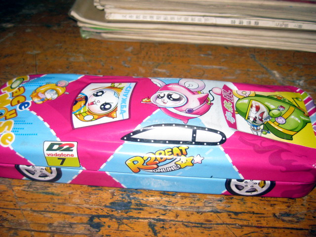 我有一个精美的文具盒。用铁皮做成的汽车模型外壳,外表被喷上了红色,蓝色和绿色的油漆。盒盖上画着绿色和红色,黄色的宇航鼠。都穿着不同颜色的宇航服,坐在"小汽车"里。看上去好活泼呀!