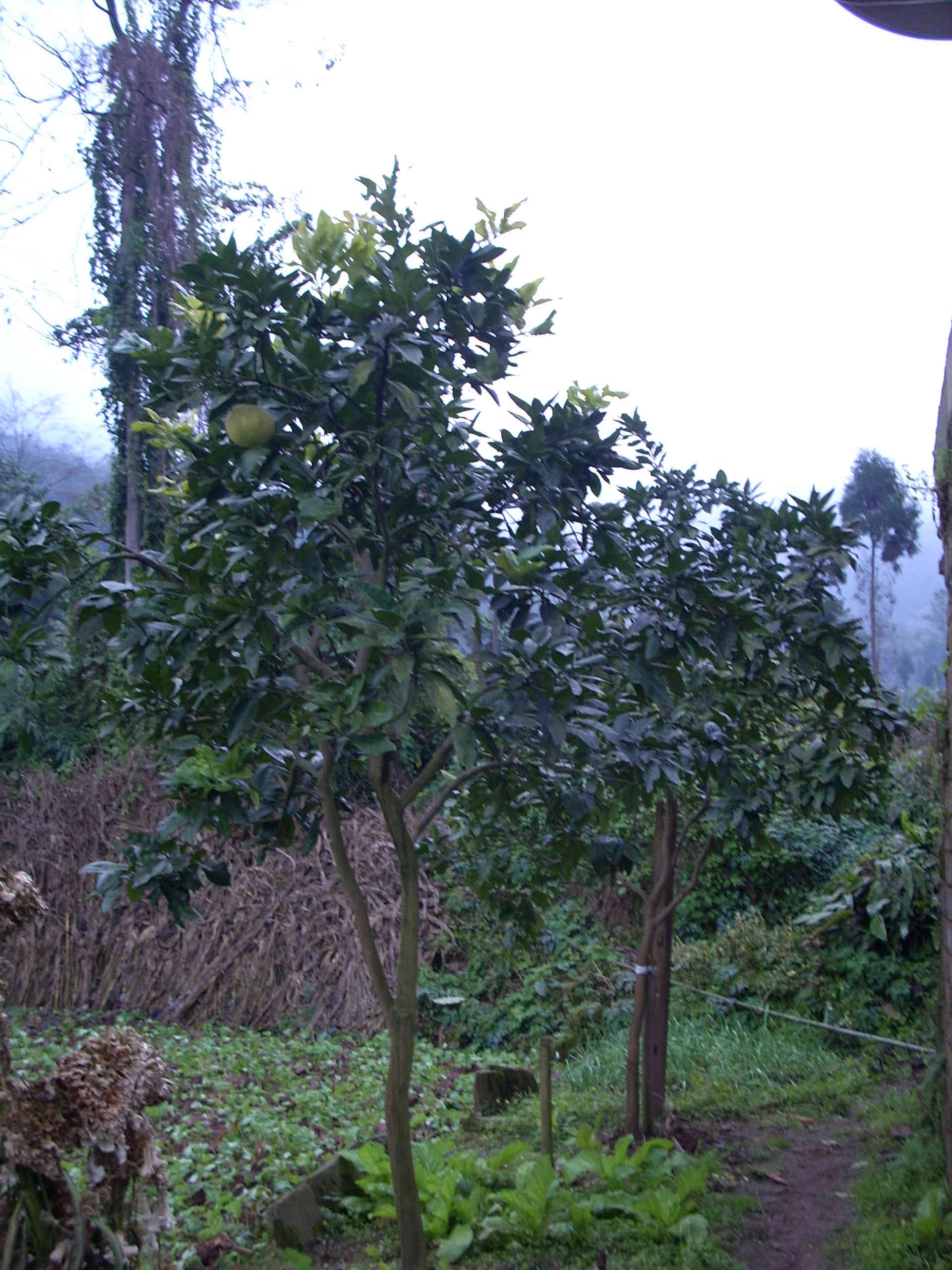 我家还有柚子树,水杉树、桦树、柏树……我最爱的是柚子树。它们虽不成材,但它们每棵一年可以结十几个柚子,最重的有8斤。成熟了,黄灿灿的,让人看了直流口水,因此每年都有人来偷去吃,偷了后,我家便会把它们全摘下来,以免还有下次。