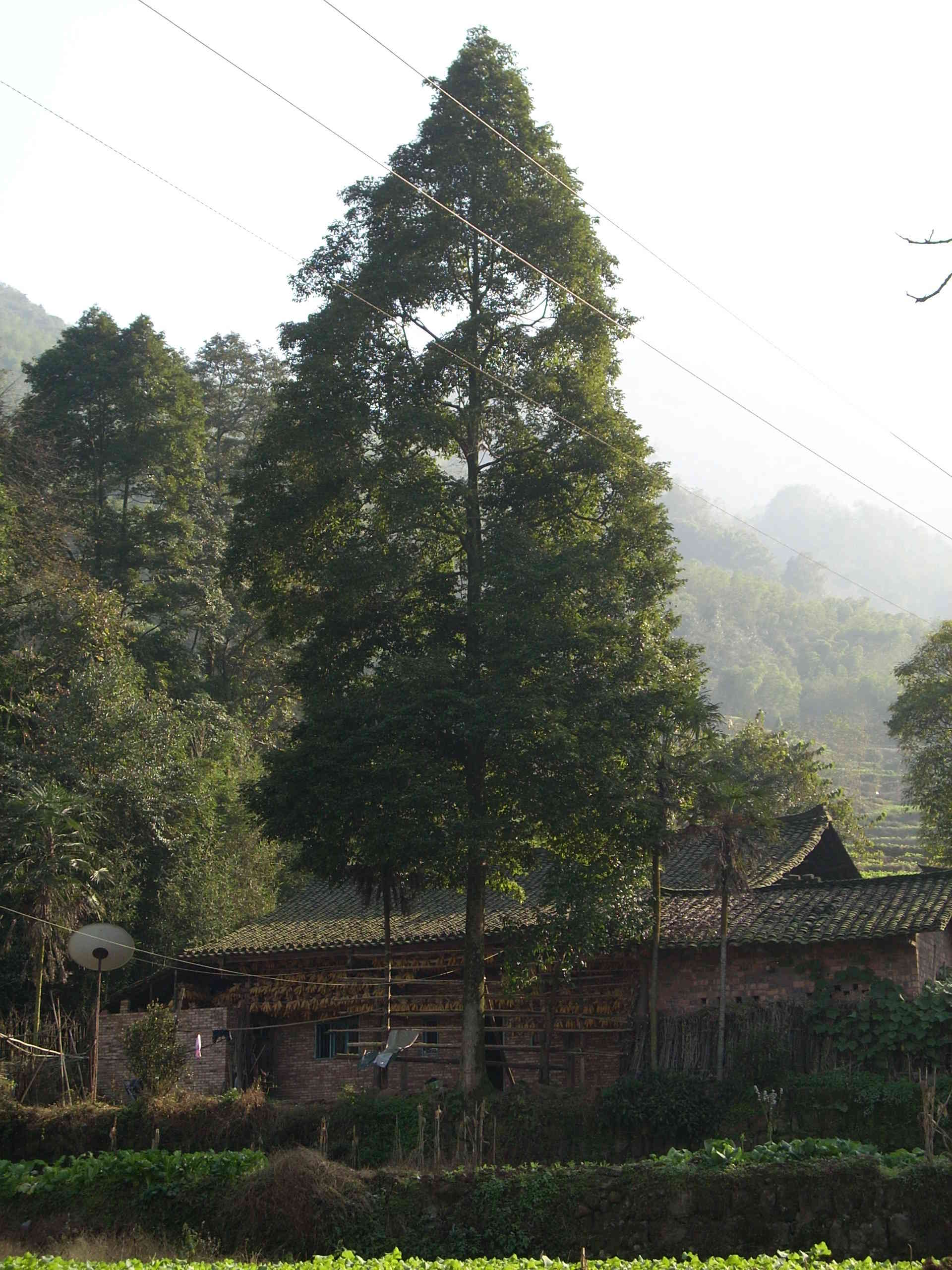 首先来看看我家的楠木吧!它是谁栽的现在谁也不知道。我的爷爷小时候就看见它矗立在那里,而且已经很高大了,和现在相差不了多少。这位老爷爷虽年岁已高,但更显它的苍劲雄伟。它的树干很直,称得上是栋梁之材。它的树干最粗的地方直径可达1米,需要两个人手拉手才能抱完它呢!它高可达25米,是许多人公认的家乡最高的树木。有人出高价来买,我家都不卖,因为它是一种很珍稀而且很贵重的木材,砍一棵就少了一棵,所以大家都认为不应该卖。
