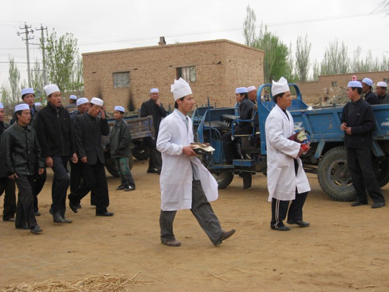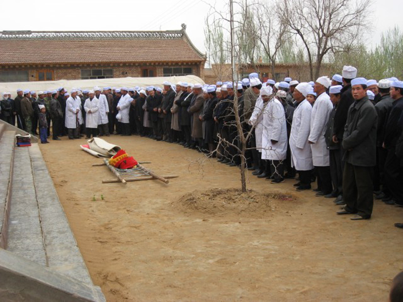 阿訇为王爷爷颂完经之后,在清真寺前,人们为王爷爷做了最后的祈祷。祈祷时,会念经的成年男子们为王爷爷念经祈祷,不会念经的孩子们则沉默为王爷爷祈祷。回族有来世之说,人们的祈祷可以使亡人在来世过的更加幸福。