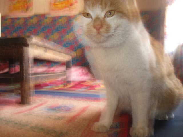 小猫很调皮,每次家里来了客人,当客人要走的时候,他到来人的脚底下骚扰,一会儿跑上来抱住客人的腿,一会儿又跑开。好像它也舍不得客人走一样,看到它如此的好客,连客人都喜欢上了它。