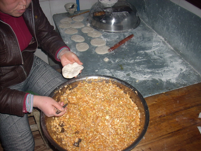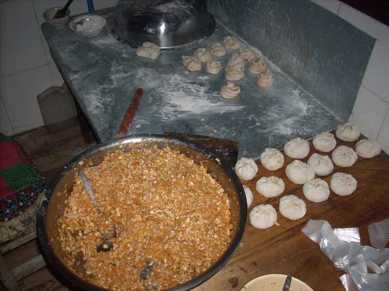 我家在学校对面,这个冬天经营卖包子。母亲每天都很忙碌,我也就略知包子的制作过程,包子馅由好几种菜组成,有莲花菜、粉条、茭瓜、豆腐,前一天下午就要把要用的菜切好,并且要切得均匀细致。每天凌晨四点多,睡得迷迷糊糊之时,就会听见母亲在厨房叮叮当当地准备包包子。首先要给提前准备好的馅儿调味,要把各种调料按一定比例拌好,闻起来就香喷喷的。做皮儿的面也是前一天发酵好的,用温水和面,要加入一些发酵粉,酸碱要适中!擀皮也要有一定技术,要擀得又圆又匀,要中间厚四周薄,包出来的包子才会有模有样;接下来就要进笼屉了,先要在笼屉的表层擦上一层香油,以免包子熟了的时候粘在上面,而且要摆得井然有序,每一笼都能多摆几个的;最后,盖上锅盖蒸15—20分钟,包子就可以出笼啦!