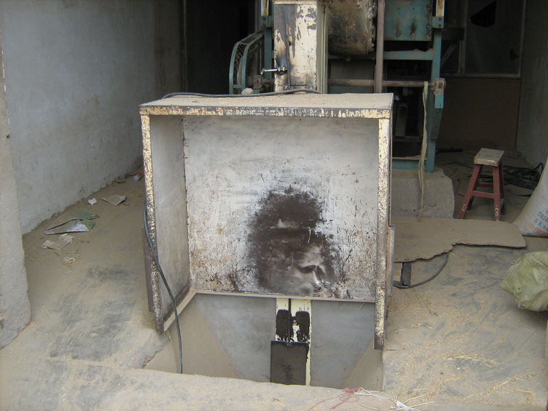 工作人员在加工水稻时,要先把水稻倒入吸入式管道的前口,稻子通过吸管到清粮筛内,然后提升机就会把米提上去,再进入筛米机内,筛米机就会把米和其他脏东西给分开,最后再进入碾米内,把碎粒米和整米分开,碎米就到了另一个大箱子里面,不一会儿,白花花的整米也就从各个机器里到最后盛米的大铁箱里.然后,工作人员拿着米袋子,从大铁箱里接米,一边接米,一边称重量,然后工作人员再用封口机把袋子的口封住。