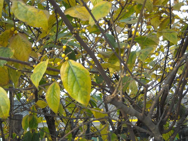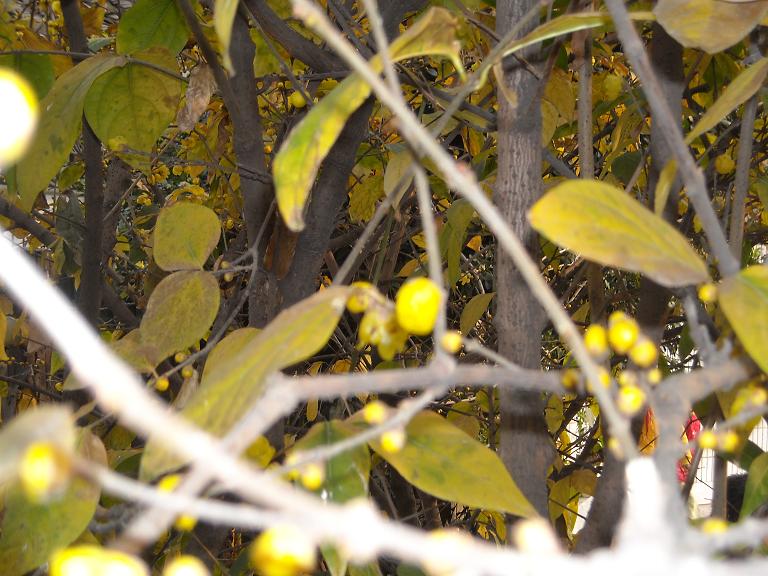寻着这迷人的香气儿,我走近了一棵树。啊,是腊梅!树上的叶子呈橘黄色,飘飘欲坠,其间夹杂着点点绿意。那金灿灿的腊梅花格外夺目,花朵儿挂满了枝头,尽管有很多还只是含苞待放。
