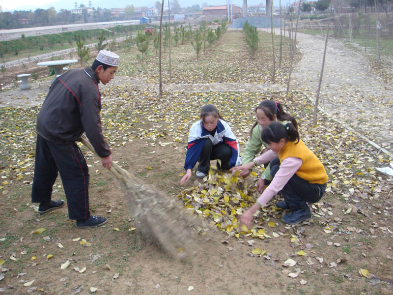 一枚枚金币儿随风飘落,地上顿时软绵绵的,过几天等它变的枯黑了,农民伯伯便享受大自然给他们的恩赐,把树叶扫到一起,拉回家,用它来烧炕,这时我懂了"落红不是无情物,化做春泥更护花"大自然就是人们的朋友。