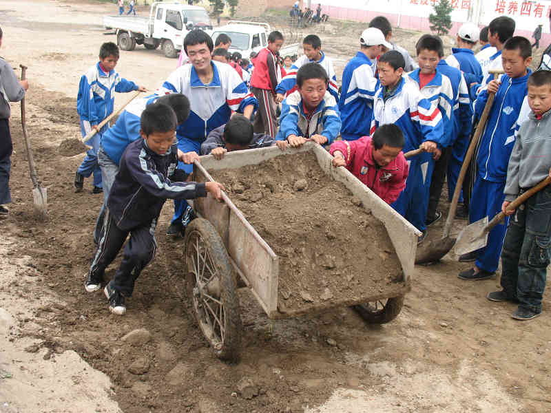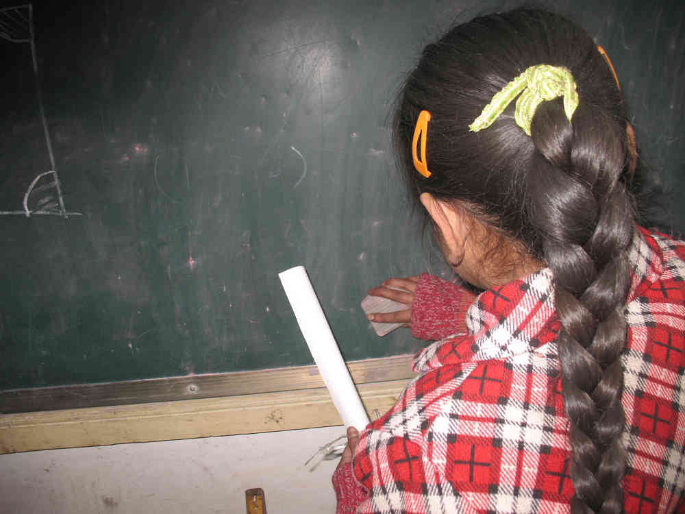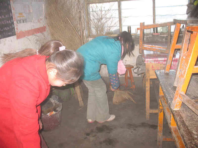 还有那两位正弯着腰扫地呢,她们是今年刚从元墩子学校转过来的,分别叫司志英、冯有英。一听到这个名字就知道她俩很漂亮很善良,落"英"缤纷嘛,像花瓣飘落一样美丽。她们两个人漂亮,学习也很好,为人正直、善良,经常在一起做好事帮助别人。这会儿她俩又在帮家远的同学打扫卫生呢,好让他们早点回家。