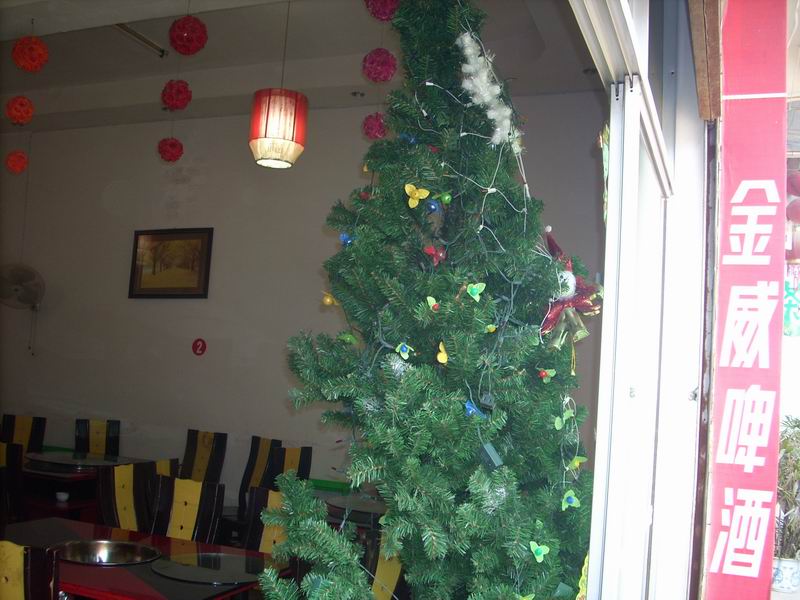 也有许多饭店门口摆着圣诞树,而且圣诞上面也挂着许多的圣诞彩灯,看到让人心里面痒痒的,实在是太漂亮了,甚至自己都想让父母给自己买一棵放在家里,如果真能那样那可就太好了!