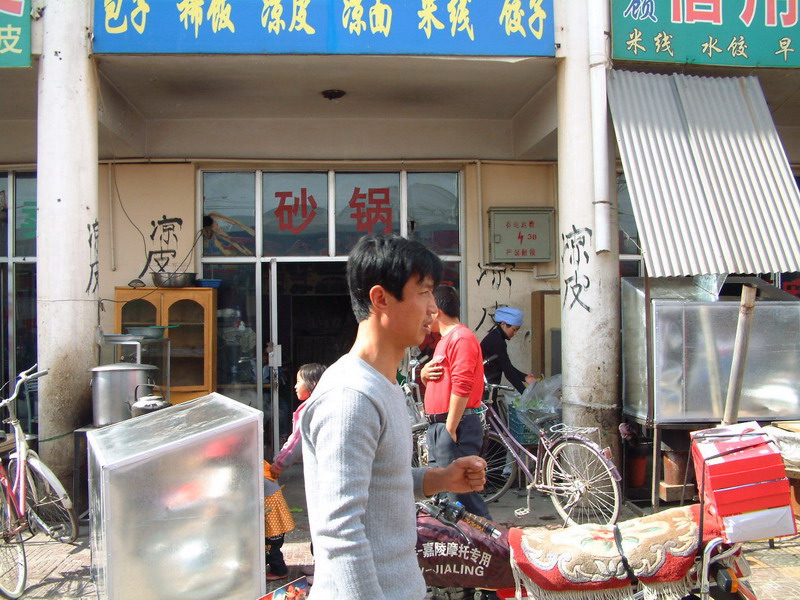 再往前走便是一排排的二层楼,只见是很多的服装店、百货店、鞋店┅┅ 走进去一看,发现里面全摆着很时尚的衣服,有童装、女装、男装等。再往前走只见又是一个大棚,原来是卖肉的,要想吃具有红寺堡风味的羊羔肉就得到这里来采购。然后再往右拐,就到小吃摊前了。如果你逛街有点累,可以到这里吃一碗富有地方特色的"凉皮"或"燕面揉揉"。