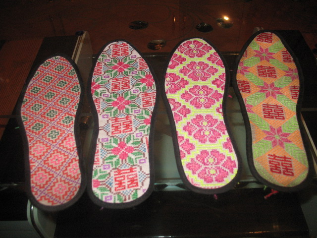 妈妈的手还很巧,做完家务她就会抽空做鞋垫。妈妈做的鞋垫真的是很漂亮,有上面绣字的,还有绣各种花的,把它们摆到一起那简直就是一件精致的工艺品,每次拿到妈妈给我缝制的新鞋垫时我都不舍得用,实在不忍心将它们踩在脚底下。