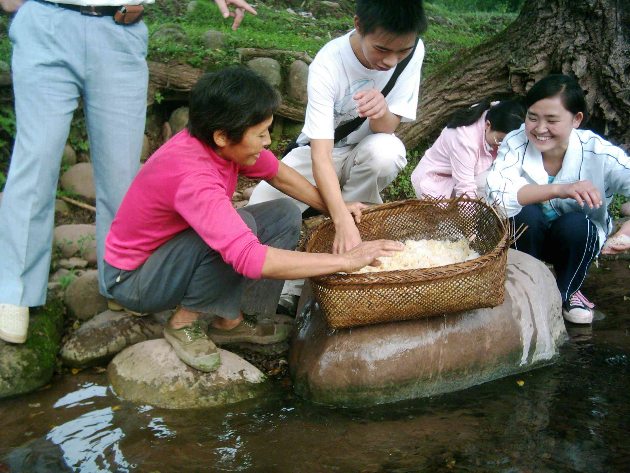 于是他带我来到了河边,只见一位阿姨正在冲洗银耳,我便不由自主地冲上前去,和阿姨一起冲洗银耳。银耳在我的手上滑落,我无限喜悦——我第一次亲手接触到了银耳,而且是我家乡的银耳。潺潺的流水溅起朵朵水花,小鸟在唱歌,还有银耳在我的手上滑落……