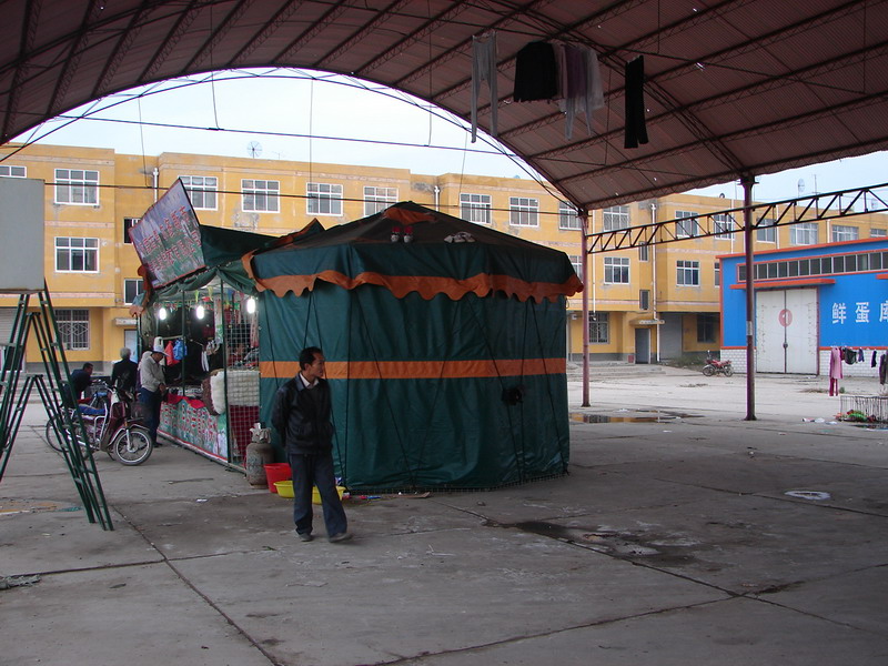 今天又是我们宣和镇的集市,我放学后在街上转悠了一圈,偶然发现了一件新鲜事情,就是远远的就听到了用音响播放出来的宣传的广告,转头看到了一个蒙古包。