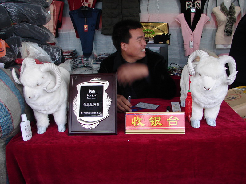 走近一看,原来是内蒙古鄂尔多斯市来的一个羊绒制品公司来我们镇的集市上来搞促销活动来了。其实促销活动在我们镇上也曾经搞过,只是那都是促销一些电视机,洗衣机,电磁炉等等,外省市的促销团对于我们这些农村孩子还没有见识过呢。