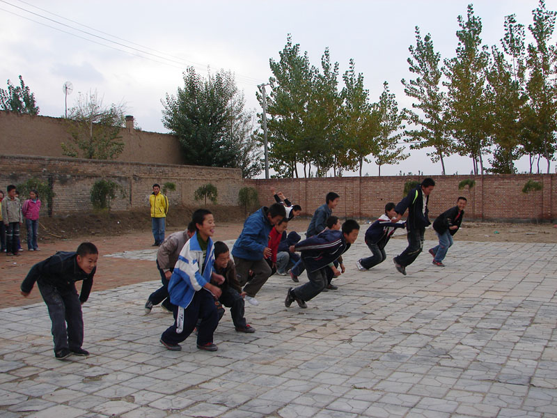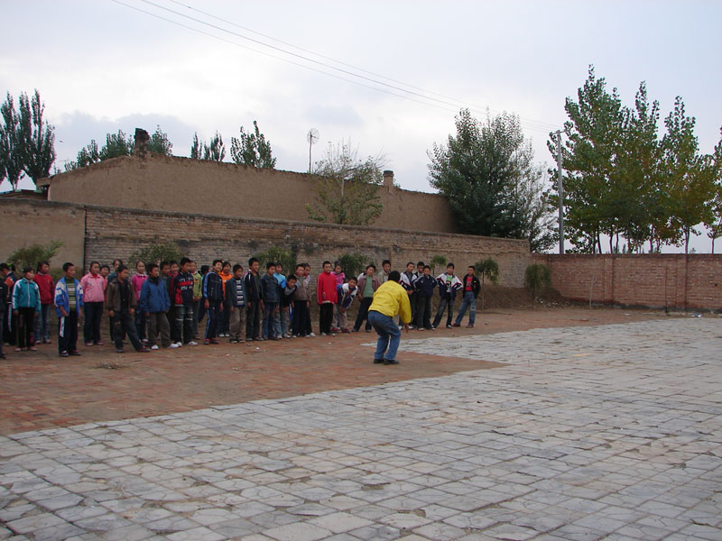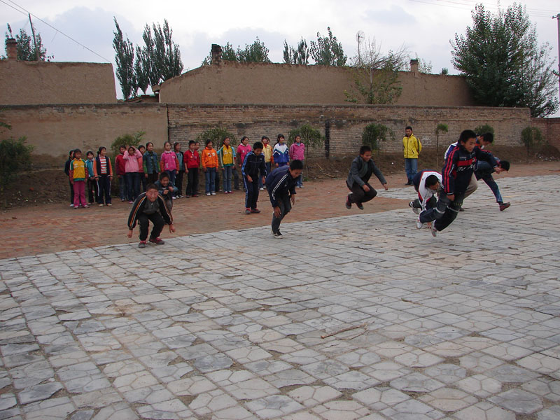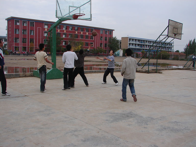 由于活动的场所太小,女同学只能先站在南墙边上观看了。唉,如果我们的活动场所能好一些,那么,女同学也有活动地方了。