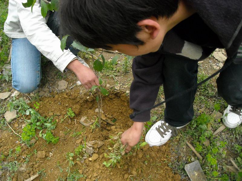 由于我没有带树苗,所以我负责给树浇水,我并不觉得这样我会很累,反而觉得很幸运,我一定培育好我的小树苗的让它茁壮成长,将来长成一棵大树,用我的感恩之心来回报社会。