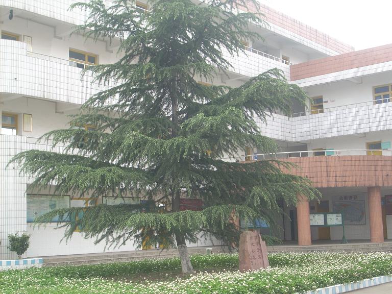 你再看,两栋教学楼中间的雪松,高大笔直,绿叶常驻,让人觉得天天都是春天。