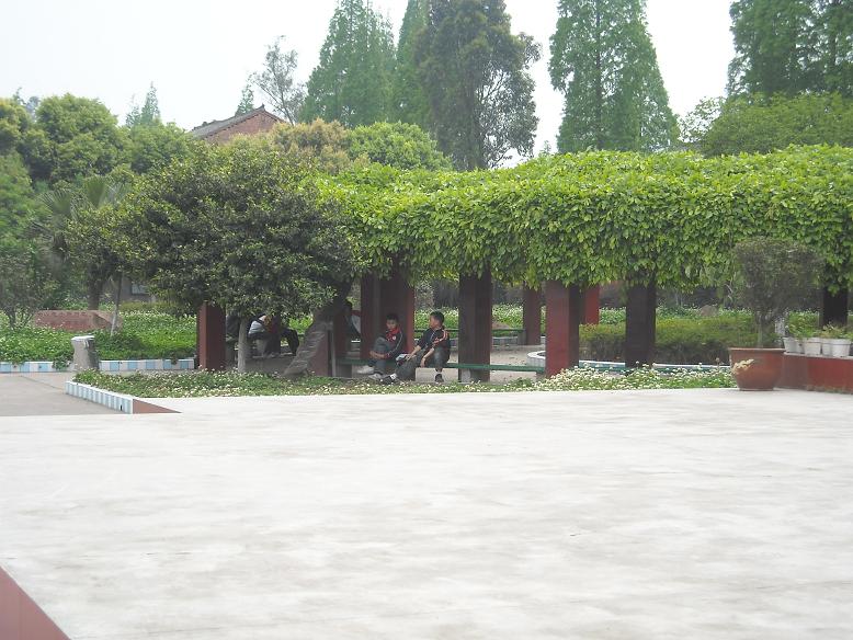 校门右边是花园,这里有各种各样的花树,不同季节有不同的风采。
