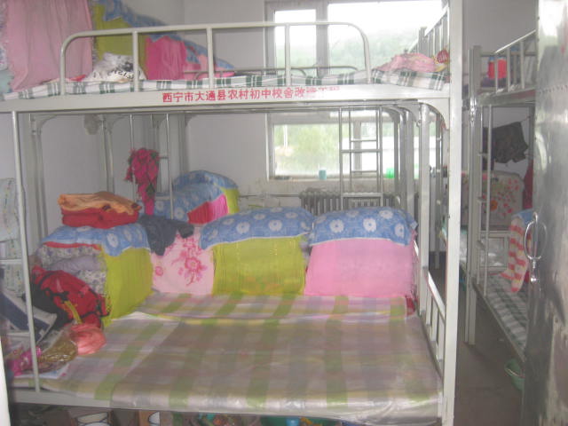 走上第二层第二个房间就是我们的宿舍。首先映入眼帘的就是我们的床,床上的被子都叠得整整齐齐。让人看了从心底里感到宿舍非常美丽;非常的整齐,非常的干净。