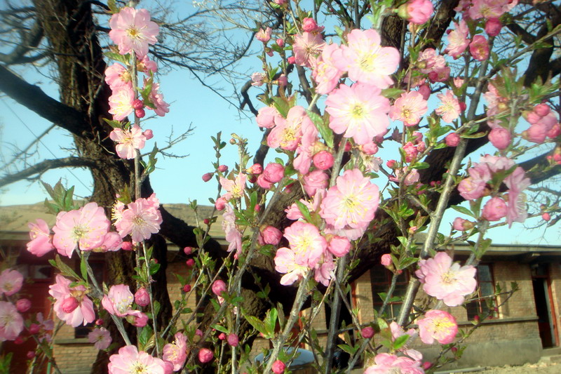 更惹人注目的是,在我们这里,如果有绚丽的花朵盛开,那么无疑就是碧桃花了,它的盛开可谓是"万绿丛中一点红"。
