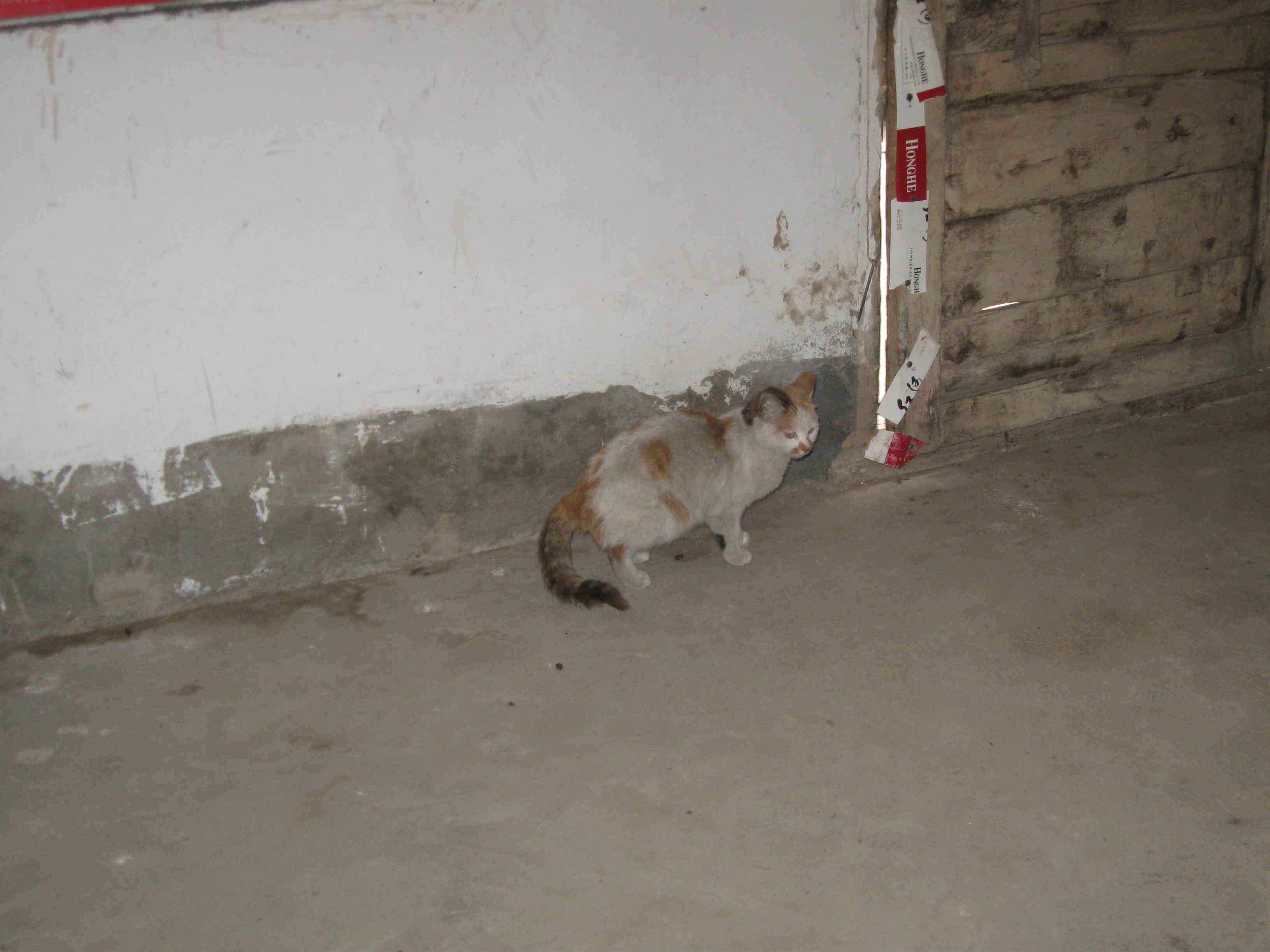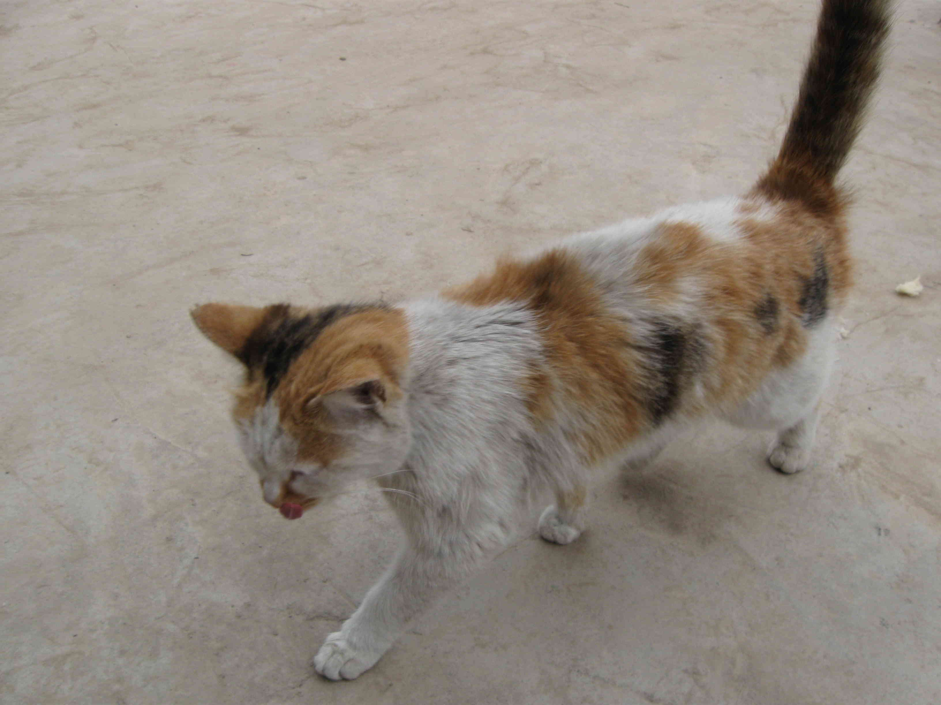 我家养了一只可爱的小猫,头上的毛是黑色的,身上的毛是白色中夹杂着黄色的,又黑又粗的尾巴不停地摆动着,一对小眼睛像宝石一样闪着光,一张贪吃的小嘴不住的叫着。要是哪儿有一点声音,它的耳朵马上就会竖起来。