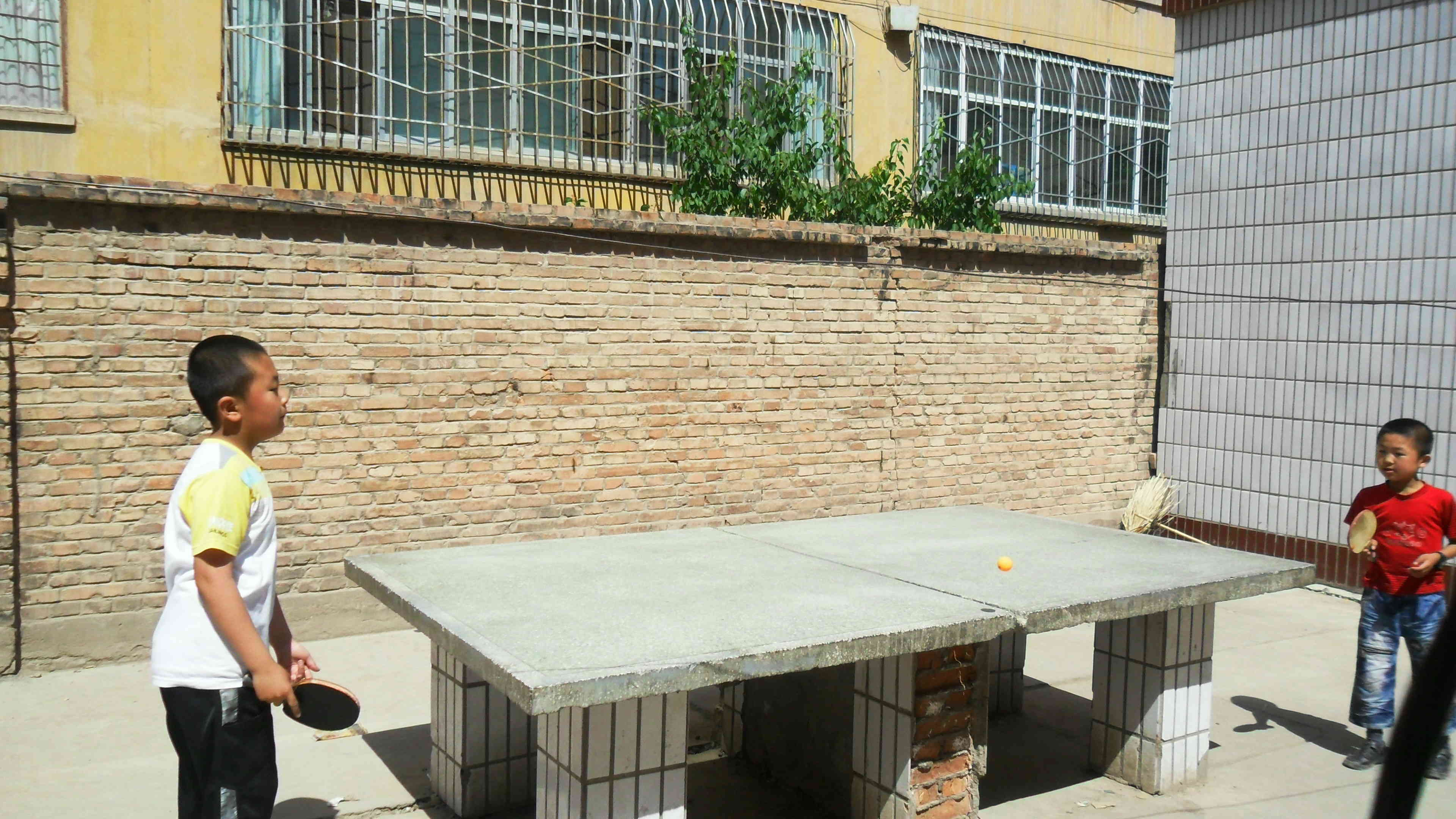 瞧,乒乓球早已成为男孩子们的最爱。一到下午,院中的乒乓球案子便是人声鼎沸。什么扣球,什么拉球,什么削球,凡所应有,无所不有,别看他们个头小,但是他们对乒乓球的热忱毫不亚于你们哦。当然,全然是为了乐趣,全然是为了得到更多的快乐。毕竟是小孩子,争吵还是有的,你推一推我,我再搡一搡你。诚然,没有一个会因此发生争执。好一幅"屁孩打球图"!