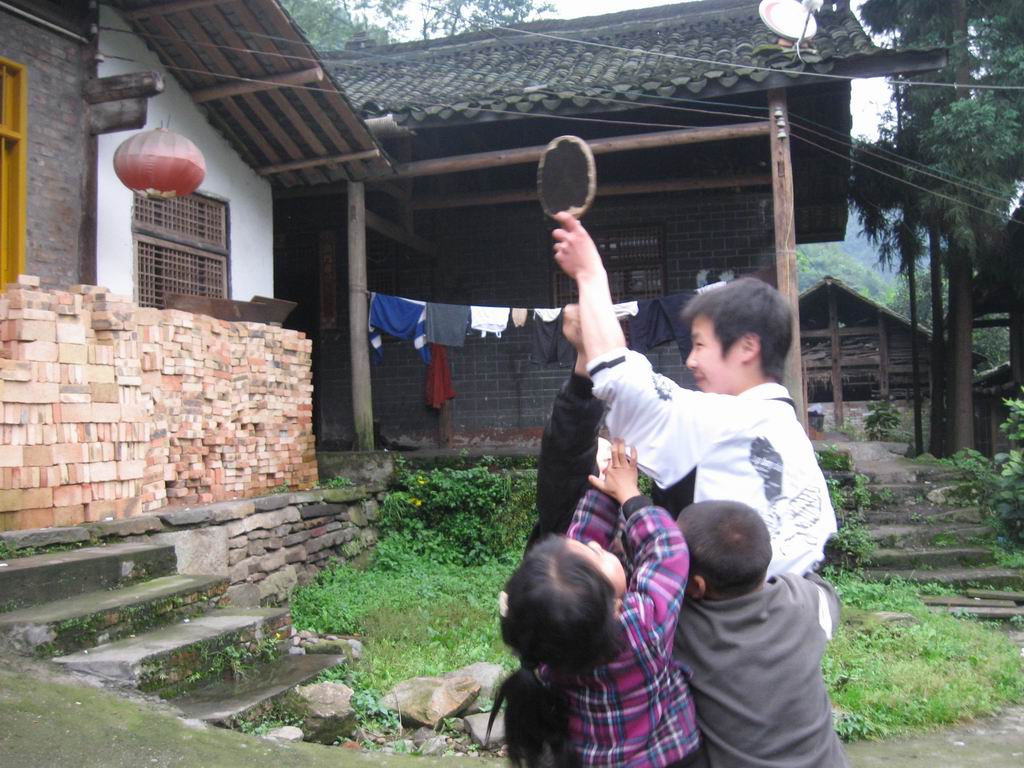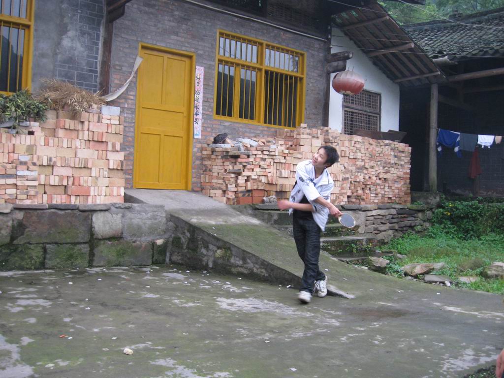 我和他们来到了一块窄小的空地上,因为刚下过雨,地面还有些潮湿。地上放着一副破旧的乒乓球拍和一只掉了毛的羽毛球。我真的很疑惑——又没有羽毛球拍,场地又这么狭窄湿滑,他们怎么打羽毛球?或许真的是“一切皆有可能”,他们在潮湿窄小的场地上,用破旧的乒乓球拍玩起了落了毛的羽毛球,而且动作还很独特。还记得他们的第一个球是一个读初三的男孩发的,那男孩儿的确有点儿个性,从发第一个球就开始耍酷,那动作既潇洒又可爱。