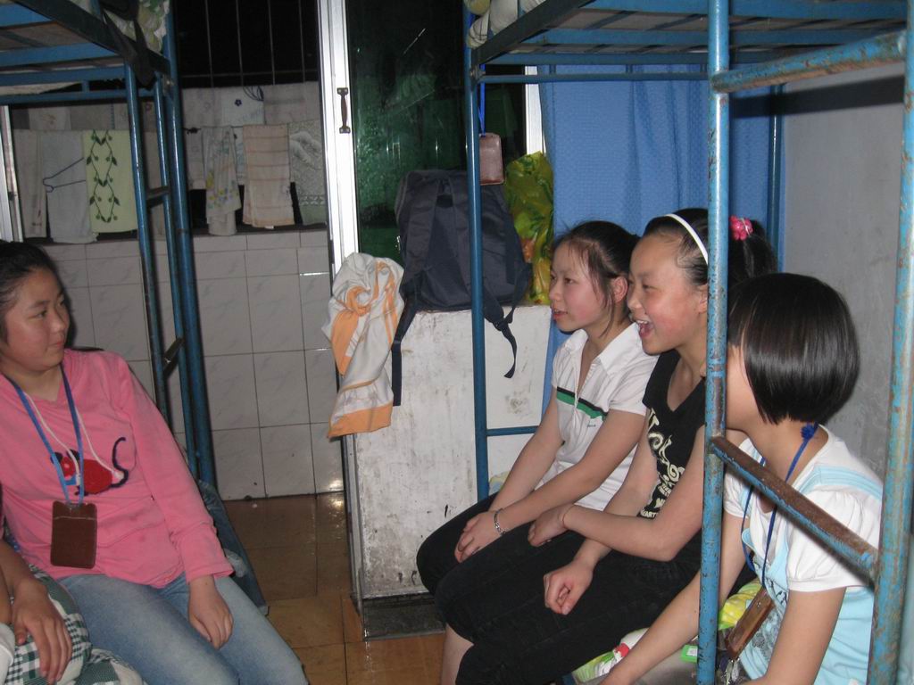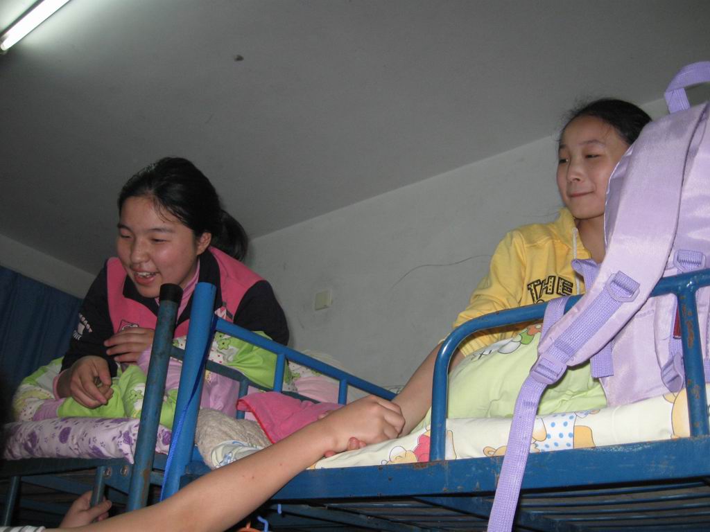 进入寝室,又是另一番景象。有的同学高谈阔论着这一天的新奇、有趣,有时还不免搞得全寝室的同学都开怀大笑。也有文静的同学,她们只是静静地坐在床边上,回味着这一天的酸甜苦辣,有时抿嘴微笑,有时低头落泪。