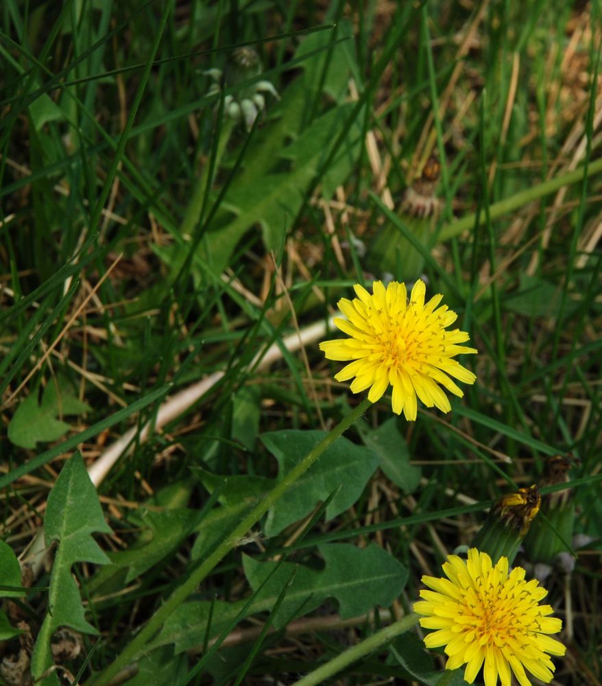 春天,蒲公英刚长出来它的茎很短,几乎是挨着地的。它的叶子是绿色的,过了一段时间,绿色的茎慢慢长高,长长。在茎的顶端长出一朵黄色的小花,像一朵朵向日葵。
