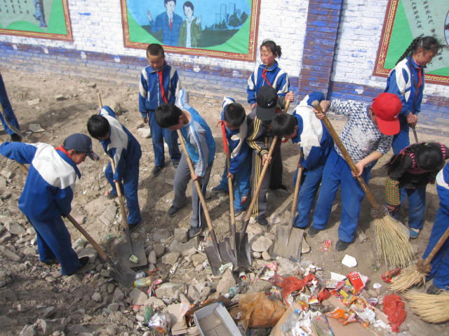 为了改善校园周边环境,近期学校组织部分学生,清理学校周边环境中的垃圾。