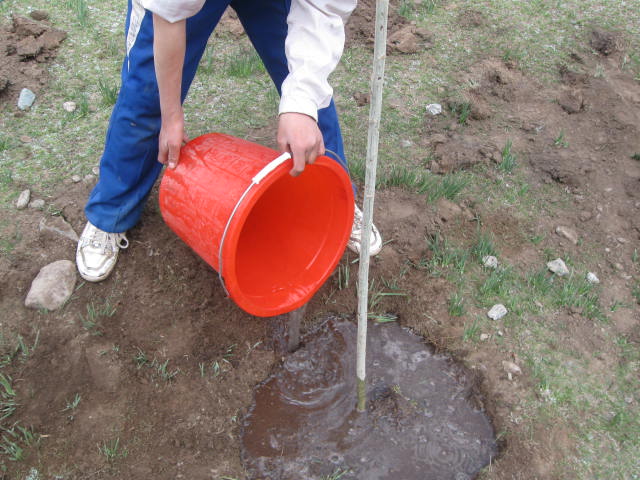 载好树苗后只剩最后一步,也是最重要的一步——浇水。这一步关系着树苗的成活,所以至关重要,同学们拿着水桶给每一棵树苗都小心翼翼的浇水。水浇完了,我们的任务也完成了。你们看,我们班的同学们多勤劳。这次我们的活动不是为了别的,是为了阻止那生养我们的西大河断流,我相信我们在我们大力支持和爱护下,它很快就能恢复到从前啦。