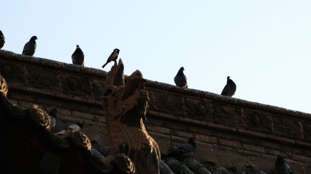 鸽子是和平、祥和的象征。我家的屋檐下,住着好几对鸽子。有人说,鸽子住在有福人家,虽然比较脏,我们也很乐意让它们住着。