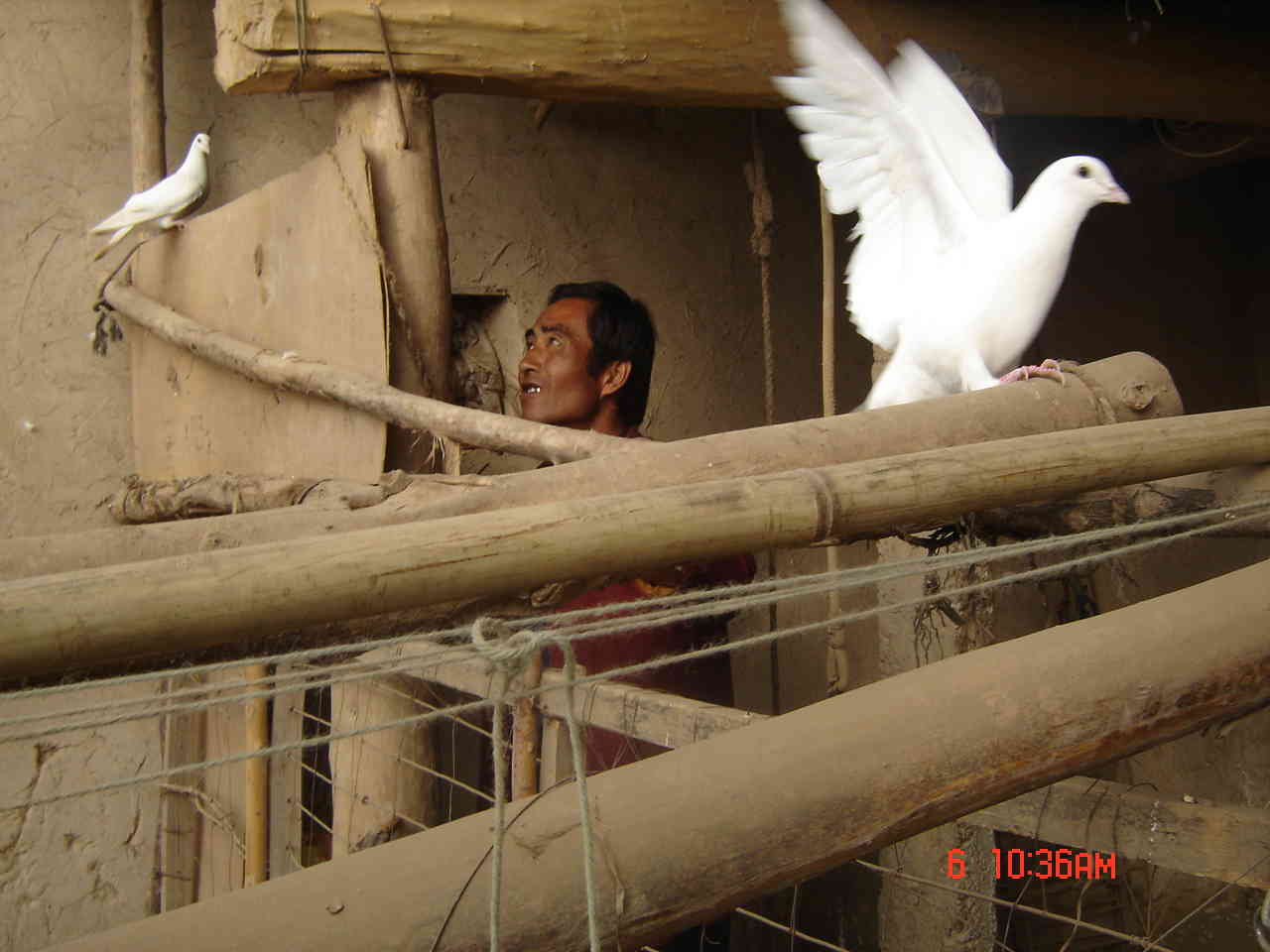 现在我家的鸽子根本不怕人了,它们竟然住在了牛温棚里。不出去觅食,饿了就抢牛的饲料,渴了也就地找水喝。我最喜欢看一群鸽子在房上嬉戏的情景:你追我赶,或是互相梳理羽毛,或是东张西望一副惊慌失色的样子,或是"咕咕,咕咕"的窃窃私语.......我真的很喜欢它们。
