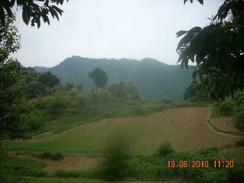 我家座落在群山之中,四面环山。早晨起来,打开大门,真可谓‘开门见山’。家对面便是西方,家前有一座小山包,树木稀稀少少,这儿一片松树,那儿一片别的什么树,田地稍多,田间小路阡陌交通。再往前看,便是一座巨大的山巍峨的立着,像一个屏障遮挡前方,别有一番风味在心头。