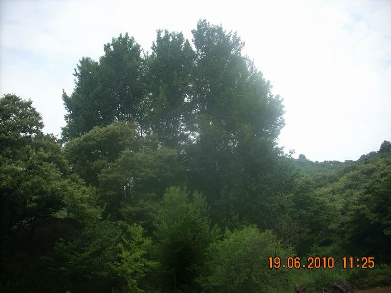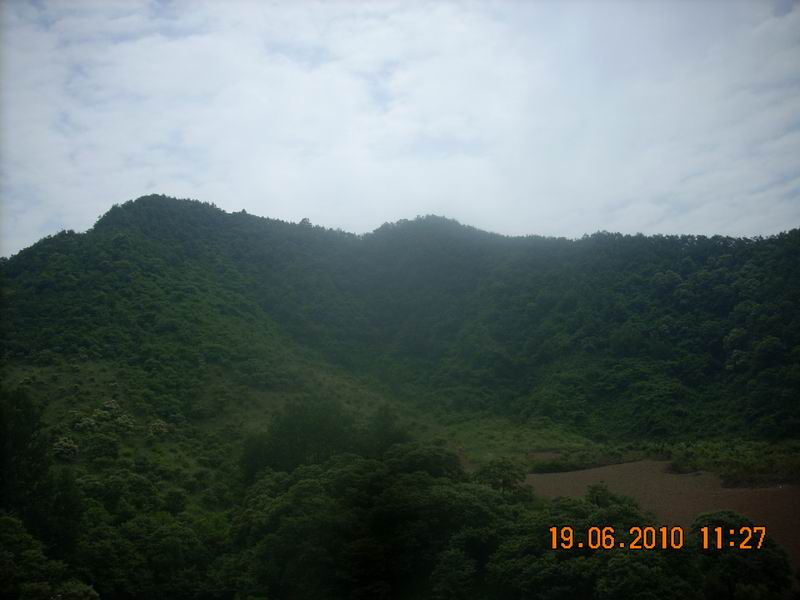 家的上面便是北方。一条小路通往前方,近处,是一大片白杨林,郁郁葱葱。现在,正是夏季,风一吹,绿色的小手不停摇摆,整个绿林像一个巨大的绿色扇子。再向高处看去,便又是一座山,门前的路的尽头便是这山的山顶,这山号称‘湾老上’。