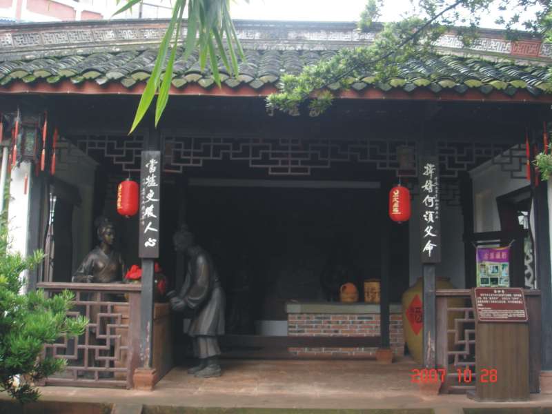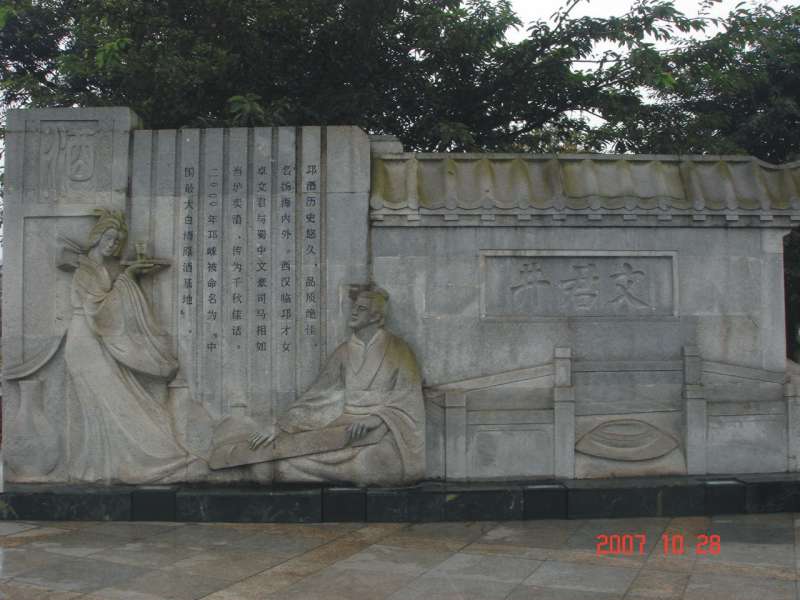 在我家乡邛崃有一西汉时的遗井,它位于临邛镇文君街中段。传说文君井是"卓文君当垆,司马相如涤器处",后人为称赞西汉时期卓文君与司马相如不畏世俗讥议的故事,将他们"当垆涤器"的遗址建园保护下来,这口遗井称名为"文君井",随之有了远近闻名的"文君酒"。