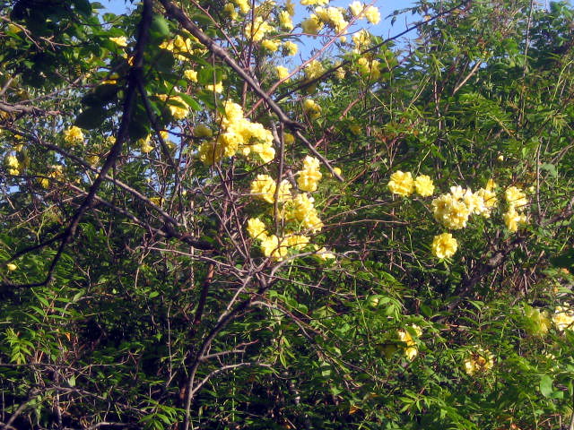我们学校后院里有很多植物,走到那里,最显眼的便是那一棵黄刺玫树,我最爱那一棵独特的黄刺玫树了。