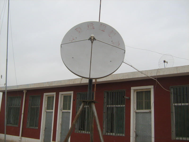 看到这个圆圆的大"铁锅了"吗?它可是我们农村孩子了解外面世界的好帮手,有了它,我们可以接收到好多课本里没有的知识,它可以开阔我们的眼界,我们会对外面的世界充满无限的向往,我们的老师也从中收益不少,他们可以从接收到的内容中选择素材,好好的备课上课.假期,村里的村民也到学校里接受远程教育培训,的确,这个"大铁锅"可真了不起!