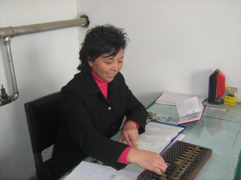 学校的大小开支,都离不开她手下的算盘,王老师的算盘打的非常快,和计算器不相上下.我们亲切的叫她"王管家"
