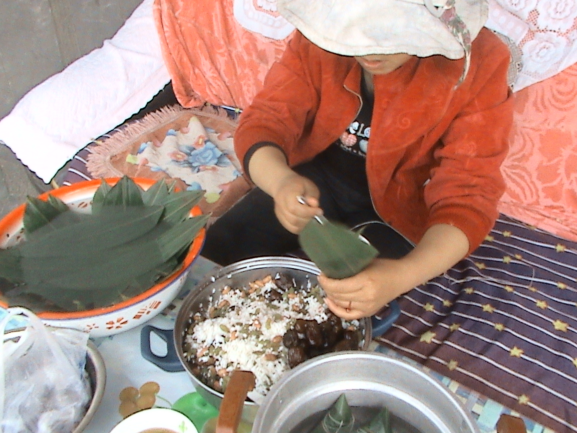当然,端午节我们除了插柳条,做菜馍馍以外,还会吃粽子。爸爸从镇上买了几个回来,尝尝总觉得不如自己家做的,于是在妈妈的召唤下,我们又开始张罗着包粽子。虽然妈妈教了我多次包粽子的方法,但是自己动手的时候,还是漏洞百出,不是米多了撑地粽叶不够包就是米太少了包完感觉空荡荡的,在尝试了一半的米之后,我的粽子也慢慢成形了,虽然样子没有买的好看,可煮出来吃的时候,感觉味道就是比买的好吃。