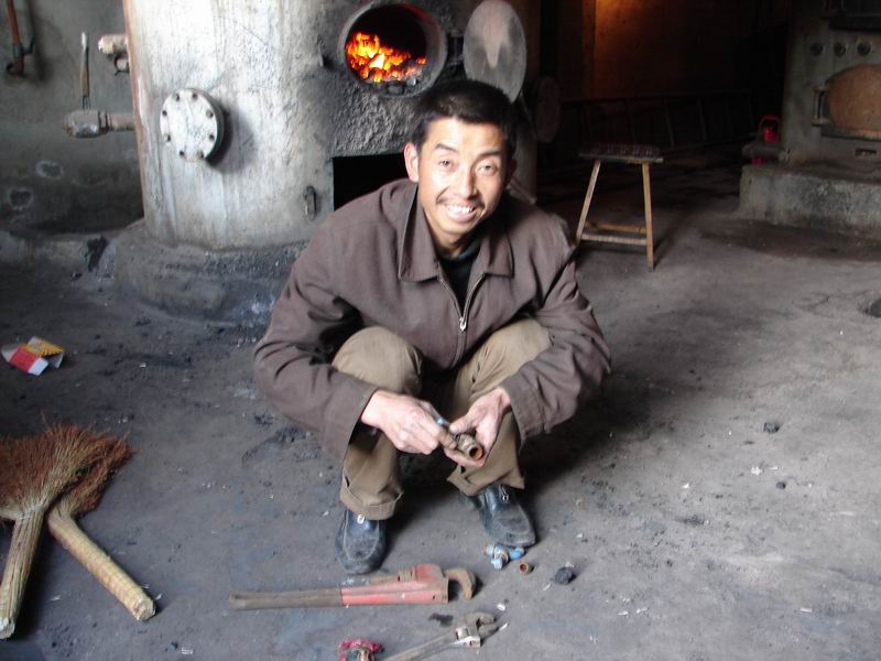 这就是锅炉房的主人:张新华师傅,他40来岁,身材瘦矮,是个很不起眼的人。学校厕所、浴池卫生、暖气维修、清运校园垃圾他全包了,可是,他的工资却很微薄,只有600元。让我们记住这些默默奉献的人吧!