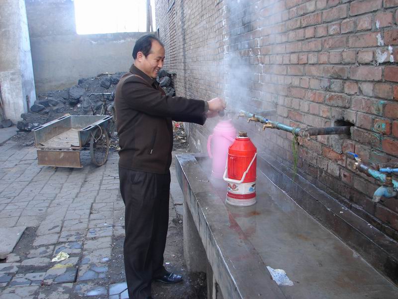 水烧开了,老师们便来打开水了。除了校内办公用水外,家在学校附近的老师还可以往家提开水做饭,烫脚,大大方便了老师们的生活。