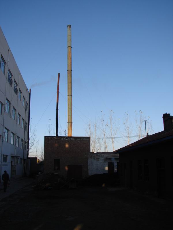 这个锅炉房位于学校最西北角,是个很不起眼的地方,但它却发挥了很大的作用:供开水、浴池洗澡、冬季供暖。为了环保,学校装配了很高的排烟管,它直径约1米,高25米,远远望去,还真有些高耸入云的感觉。