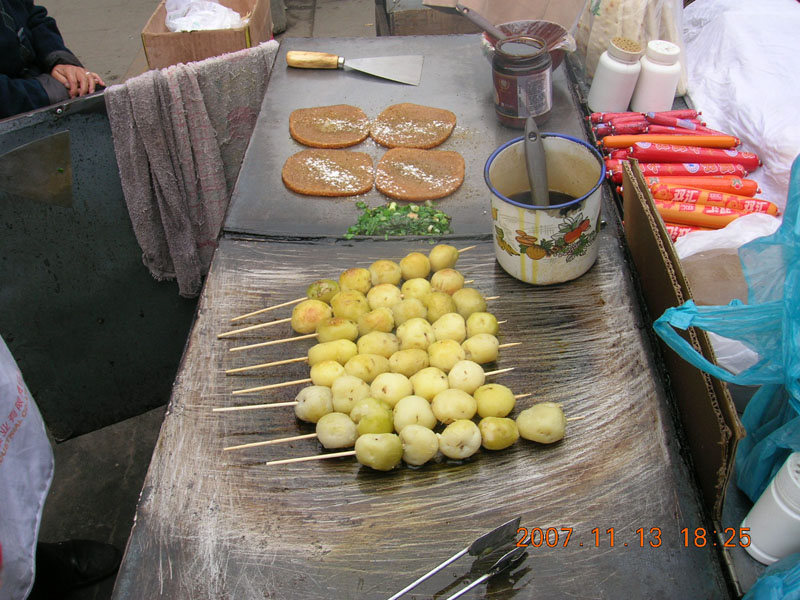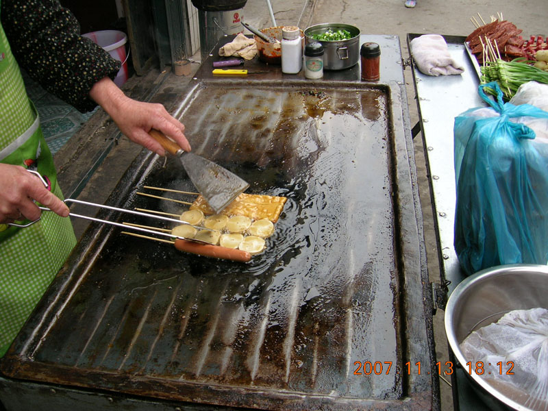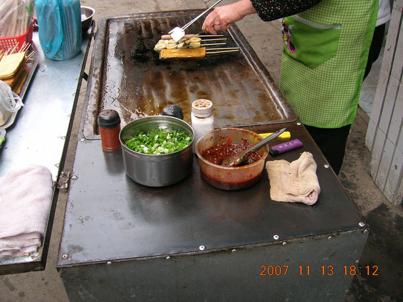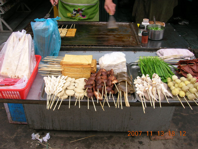 第一步:把各种各样你喜欢吃的蔬菜用清水洗干净后,把它们切成有规则的形状,一小块一小块的串在竹签上,摆放整齐,每一类菜分放。这样既美观,有方便。由于卖主都是用一辆小车,带上煤气,并且车子下面有轮子,可以推着走,很方便。在车子的表面贴有宣传语,很显眼。所以,很容易找着。
